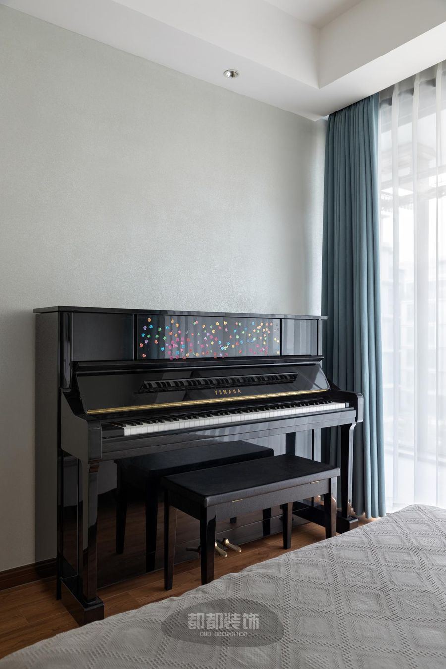 黑色的长方形钢琴搭配同色琴椅,无形中圈定了一块专属于音乐的的空间,侧面是阳光正好、微风吹拂的阳台,在这享受音乐的快乐,再合适不过了!