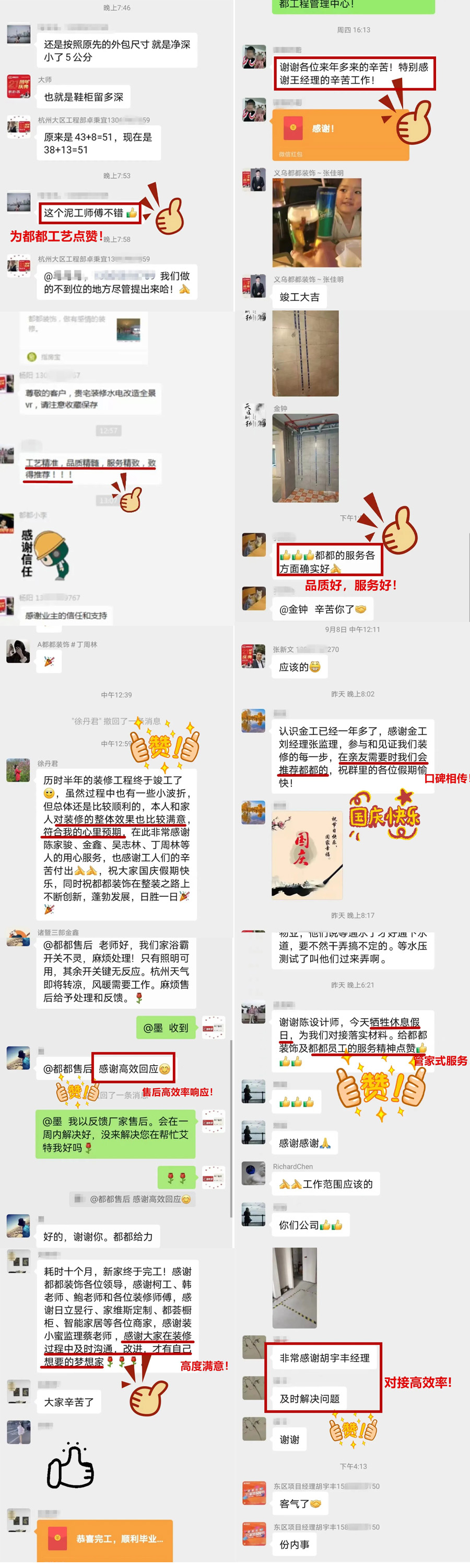 即便竣工交付,我们的售后服务群也会一直存在,只要选择都都装饰,那么都都的服务将伴随您终身,任何售后问题,我们做到五分钟响应,不推诿、积极解决问题是都都一贯的作风!
