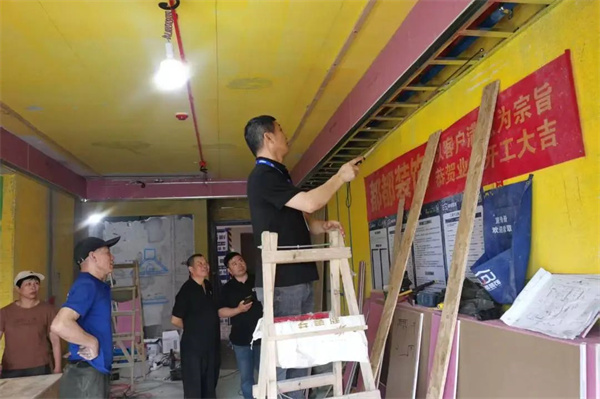 工地巡检的过程,也是一次查漏补缺的过程。每周都都装饰工程部的巡检,巡检小队成员都会将现场照片上传至群聊进行备份存档,做工程出身的董事长都宜贵先生也会时不时在群里对工地问题进行监督指导。
