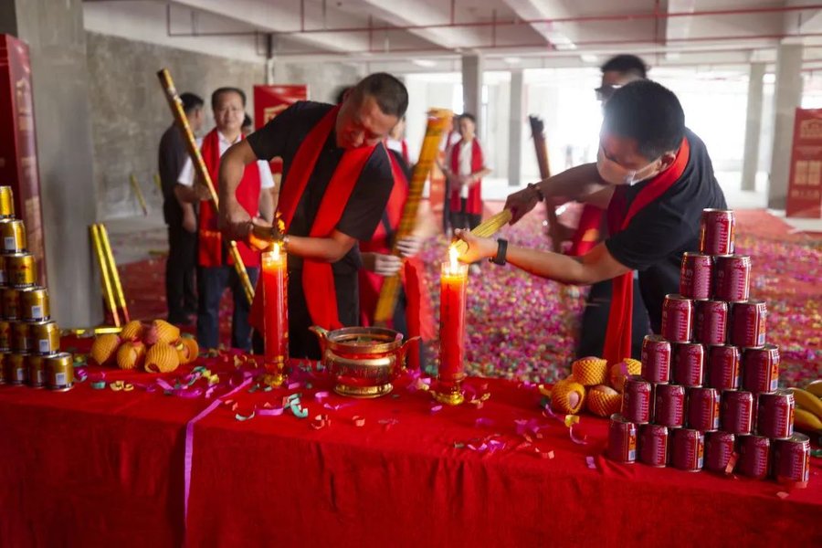 ▲ 董事长都宜贵先生挥下开工吉祥锤
