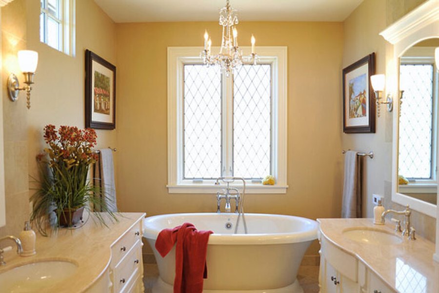 黄色的灯光都容易制造出朦胧、柔美的感觉,也是最常见的暖光源,能够使浴室既不感觉阴冷又不会光线刺目、浴室空间也不至于黯淡,让人放松心情,浴室过于明亮反而会让人缺乏安全感。