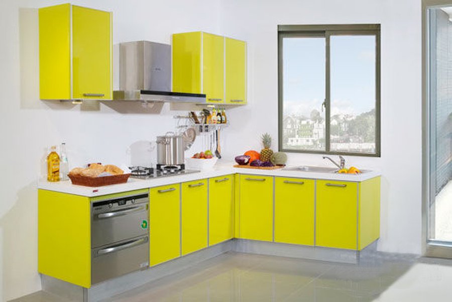 L型橱柜:L型橱柜同样适合于小空间,方形的厨房或者厨房长宽比例接近的适合使用,一般的小户型,希望更加节省空间,在满足上述条件的情况下可选用。这种橱柜让厨房工作集中在一个三角区域内,十分便利。