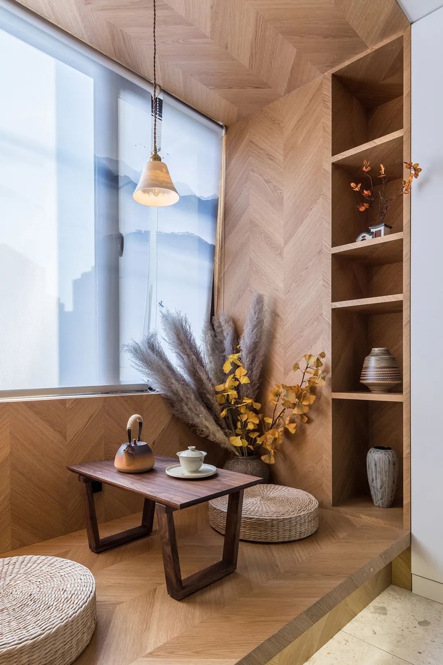 没有经过精细加工,最大程度地保留原木的特殊纹理、柔和细密的质感以及朴素的色彩,创造出带有生命力的家居环境。
