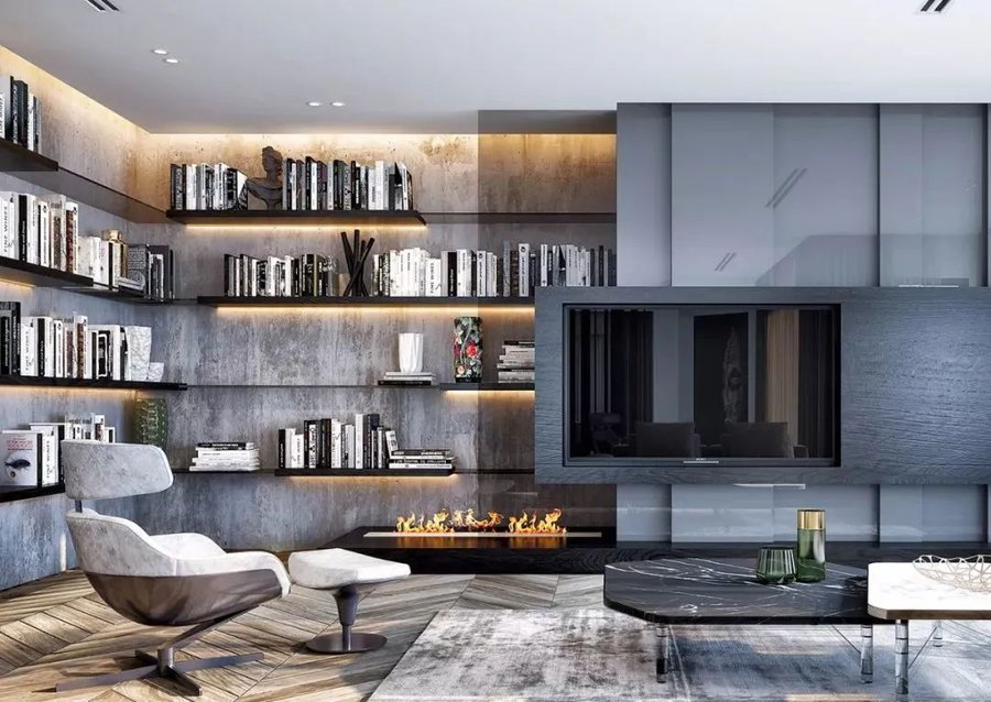 如果喜欢读书,想为家里增添一丝书香气,那把电视背景墙做成书架也是不错的选择。还可以根据自己的需求灵活选择,做成封闭式或者开放式的书架,在颜值上也超能加分哦!