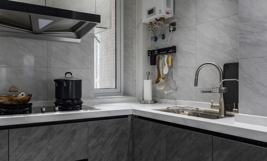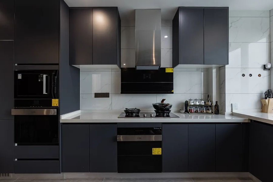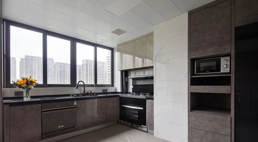 在装修初期,可以提前和设计师一起,规划好电器的位置,设计成嵌入式,不仅颜值高,严丝合缝的设计也避免了空间浪费,出现卫生死角。