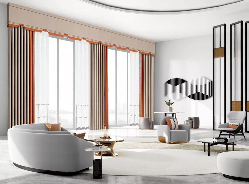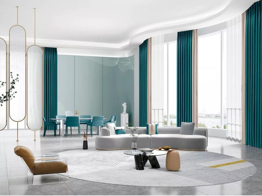 最后,还可以根据装修风格来确定客厅窗帘的颜色。不同风格对装修元素和色彩有一定的要求,那么配合整体风格来搭配也就能够使得整个客厅环境变得更和谐和搭调。