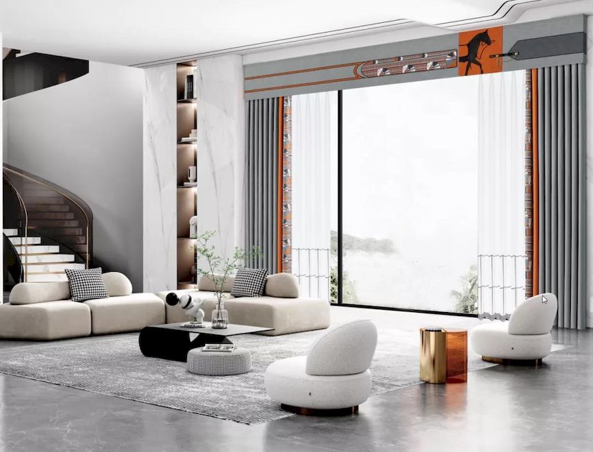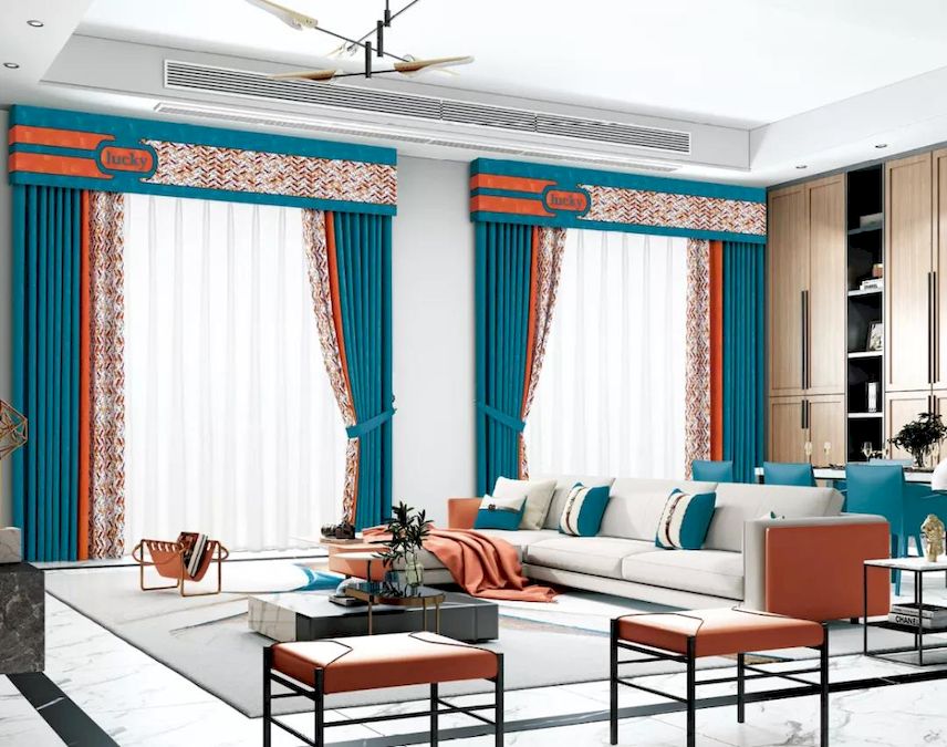 客厅:选暖色窗帘,热情、豪华。