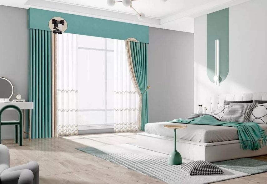卧室:选平衡色、静感色窗帘较好。