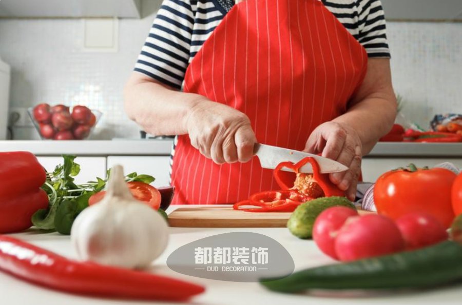 建议选择开敞透明的中部柜或吊柜。老人经常会忘记把东西放在什么位置,在老人视线高度范围1.2~1.8m的位置,设置开敞或透明的吊柜,便于老人寻找拿取。