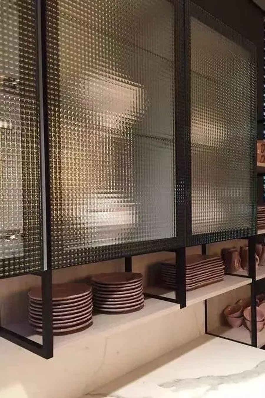 方格花玻璃用在置物柜上,不仅颜值高,还能遮挡住柜子里凌乱,对于想要玻璃柜门,却又懒得收拾柜子的懒人极其友好。