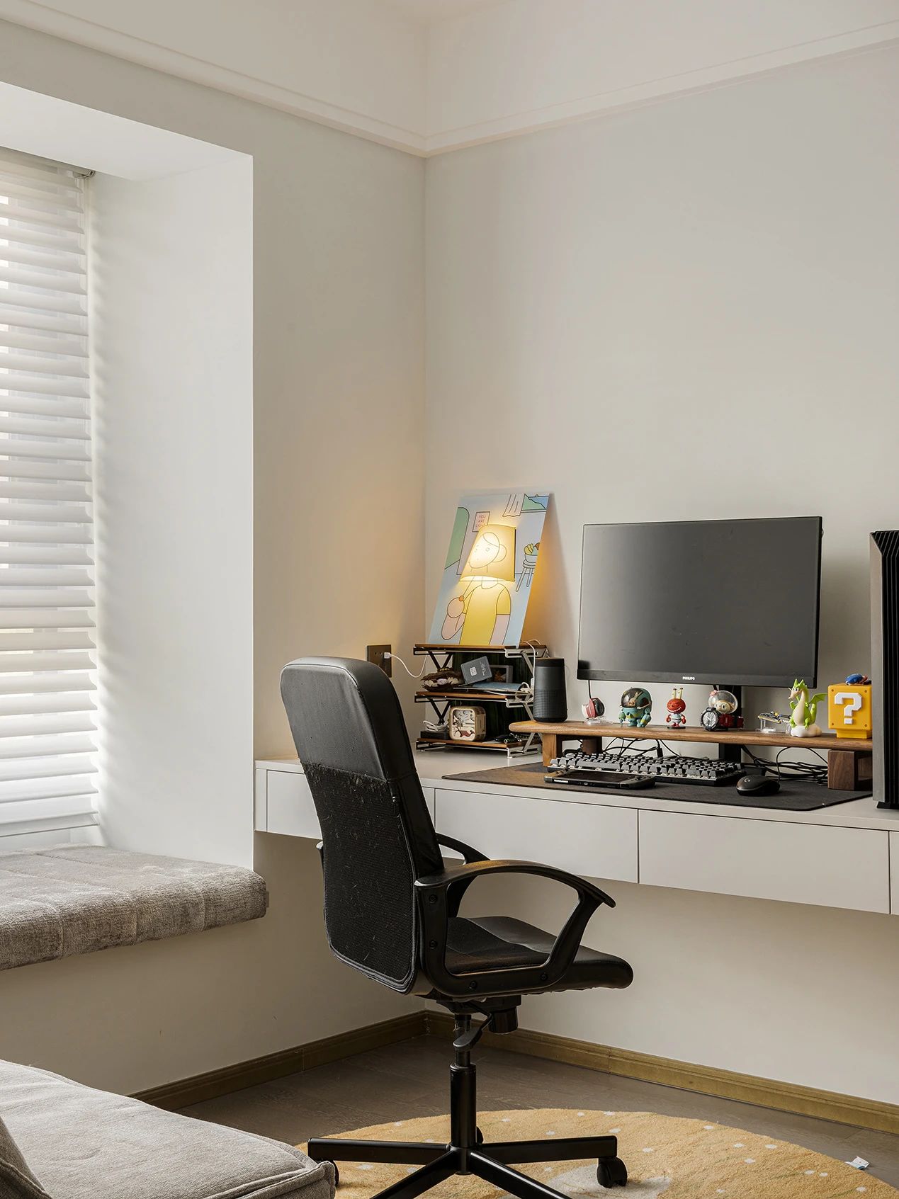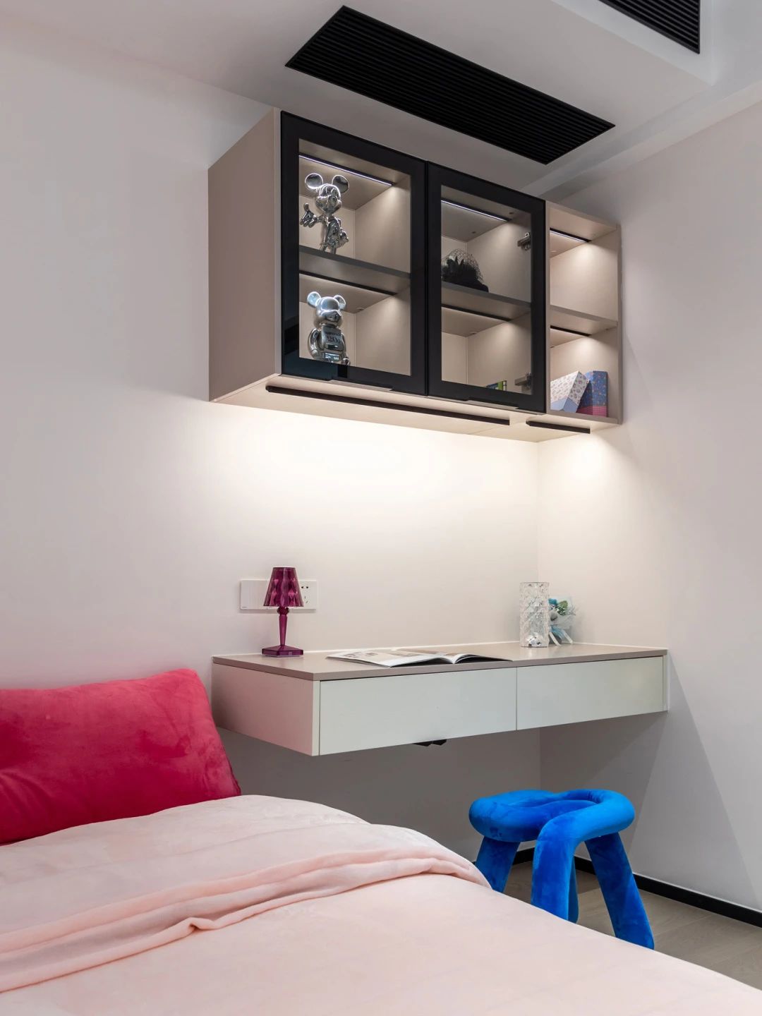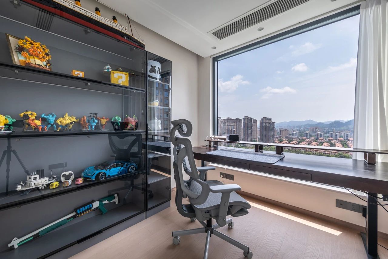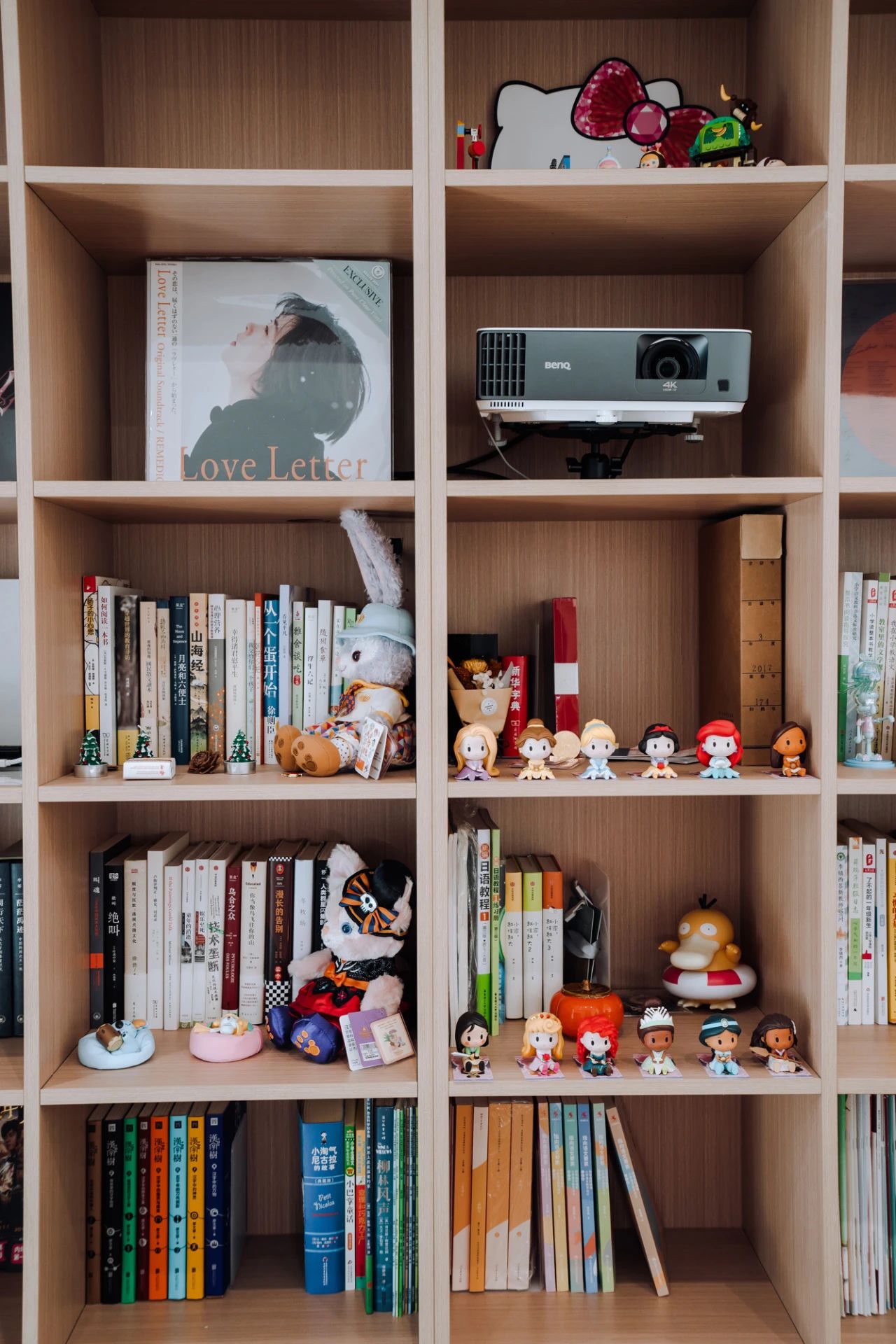 同样还可以在书房买个成品柜,或者做定制柜的同时专门做出一个用于展示潮玩手办的区域,还可以根据物品的尺寸去规划专属的展示位。