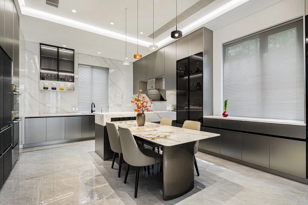 冷峻的哑光质感、极简的几何线条,轻松驾驭现代风、轻奢风、意式极简等主流风格,尤其适合开放式厨房+岛台的设计。