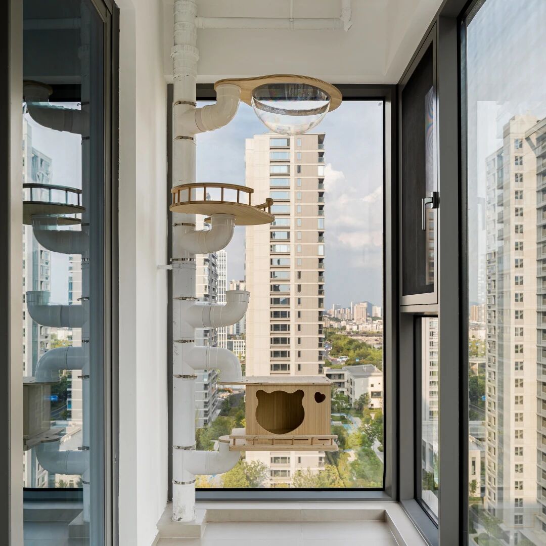 如果养的是跑酷型宠物,比如松鼠、蜜袋鼯或精力旺盛的小猫,还可以将设计思路从地面延伸到空中。