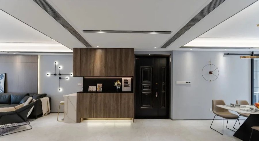 想要玄关更宽敞?很多人选择不做玄关柜。那就大错特错了。出门物品,鞋子,包需要收纳,否则堆的到处都是占地空间大,也影响美观性。